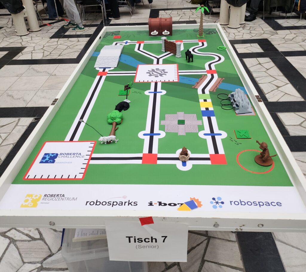 Die Roberta‑Challenge ist ein von Schülerinnen und Schülern organisierter Roboterwettbewerb für Klassen ab Jahrgang 5. Dabei treten Teams mit selbstgebauten Robotern gegeneinander an und müssen auf einem Parcours möglichst schnell und präzise verschiedene Aufgaben lösen.