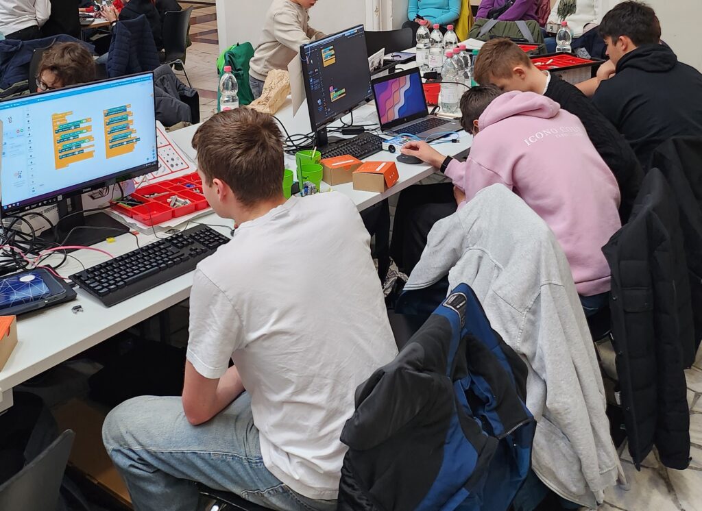 Kurz nach dem Start des eigentlichen Wettbewerbs lief jedoch nicht alles nach Plan. Während es bei den anderen Schulen reibungslos funktionierte, hatte eines unserer Teams zunächst mit einem Programmierfehler im Code zu kämpfen. Als wir den Fehler schließlich fanden und beheben konnten, blieb uns nur noch wenig Zeit. In den letzten 30 Sekunden gelang es uns aber, den Roboter erfolgreich zum Start zu bringen.